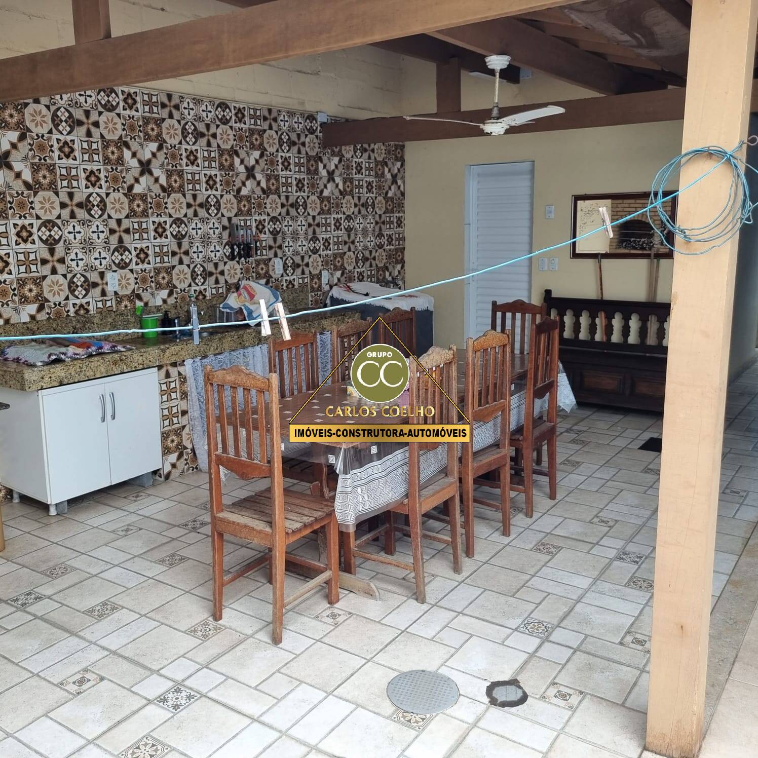 A casa dispõe de gás encanado nas área gourmet, cozinha interna e banheiro externo.